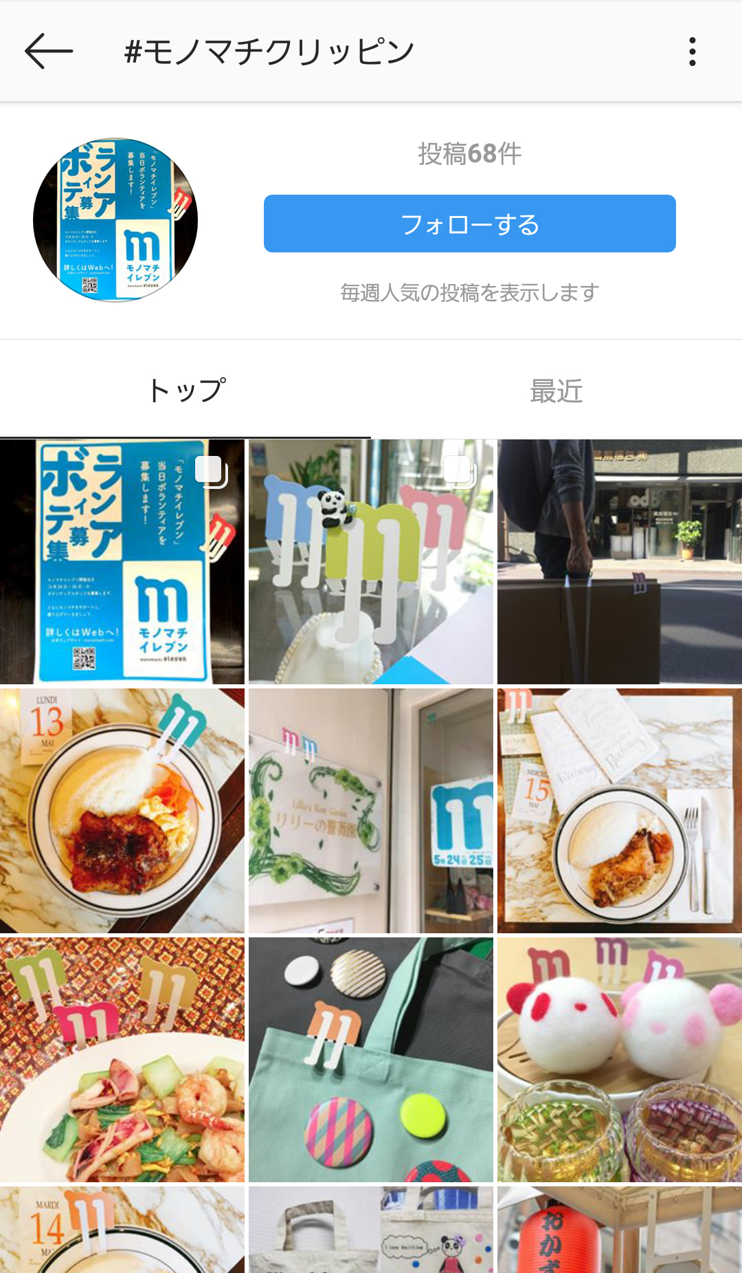 撮った写真に「#モノマチクリッピン」(全カタカナ)とつけてインスタに投稿すると、