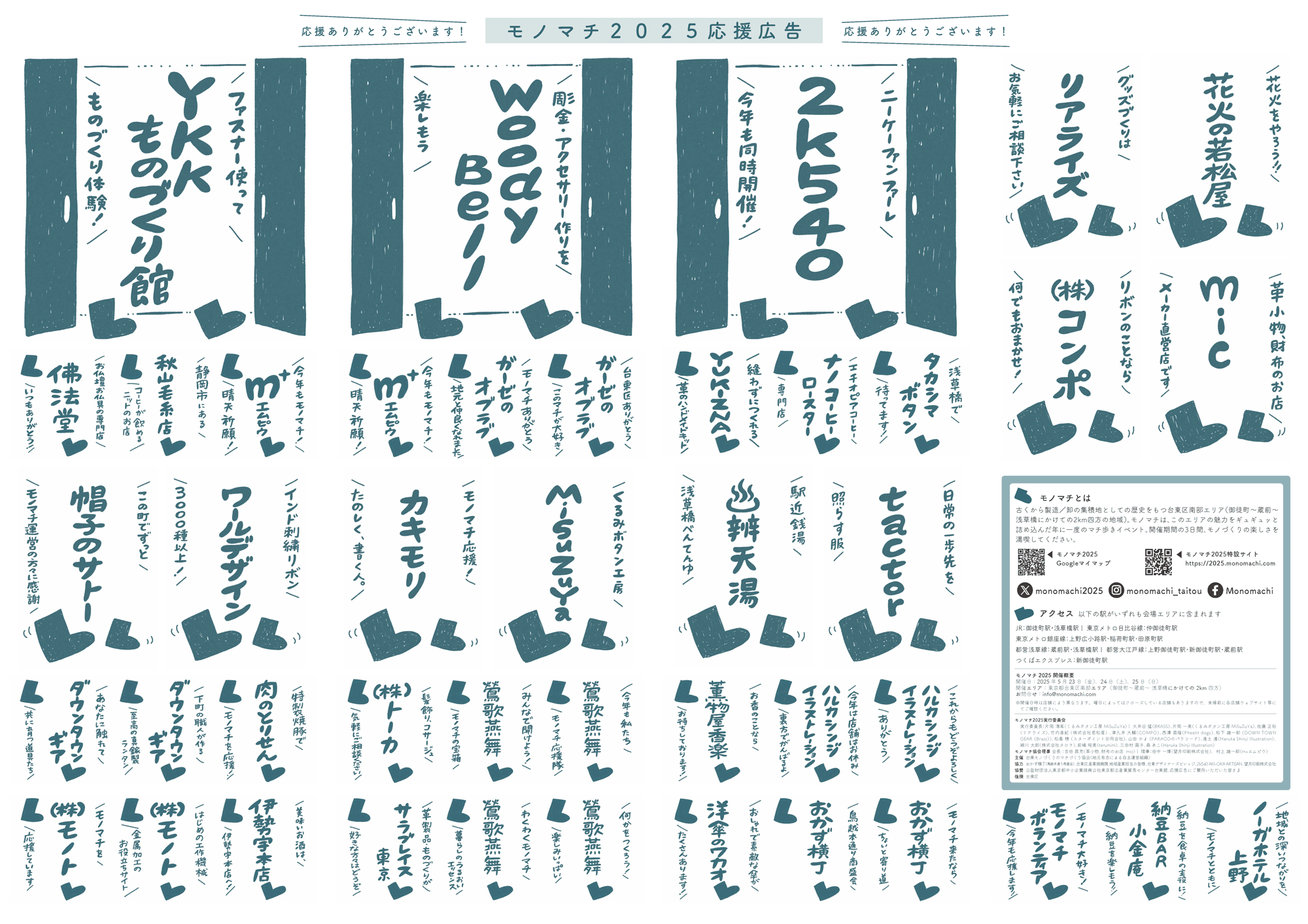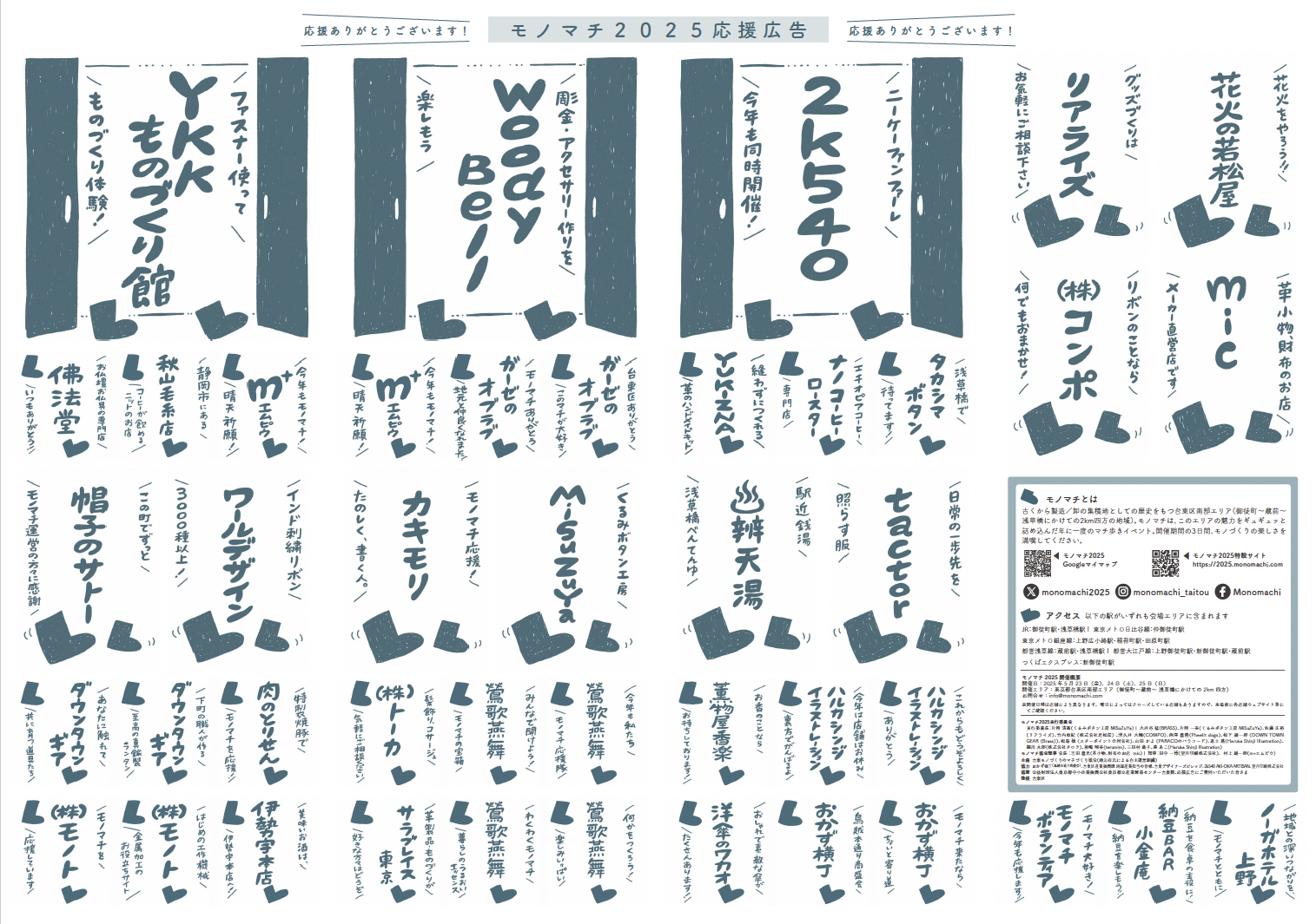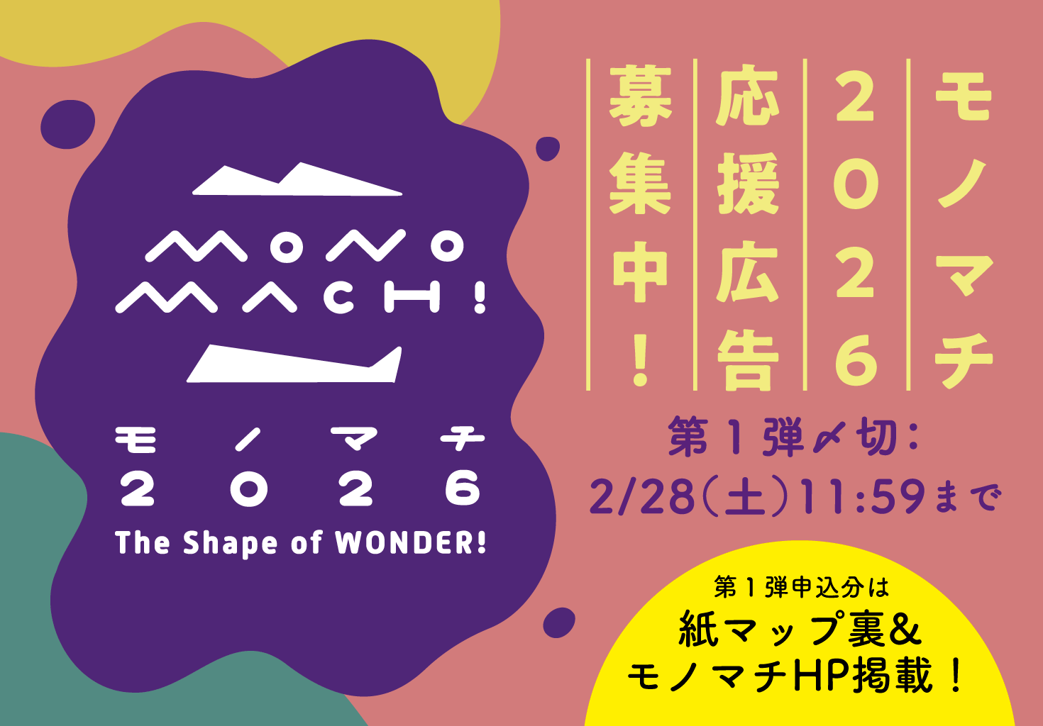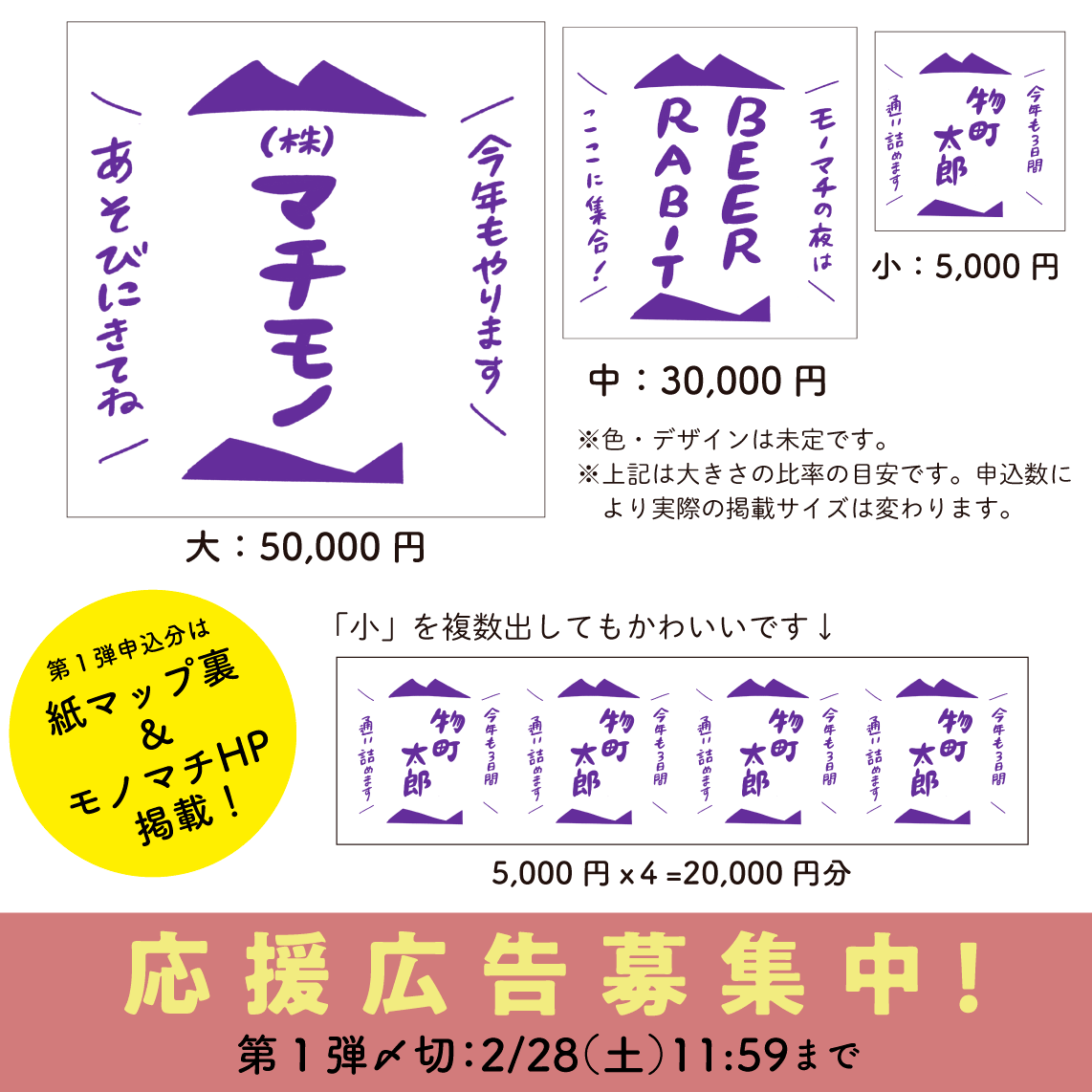 モノマチ2026では、企業、団体、個人の方など、ただいま幅広く応援広告を募集しております。