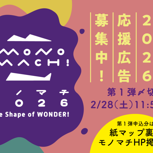 第12回モノマチの開催が決定しました! 令和2年5月22日、23日、24日の3日間で開催します。 第12回目を迎えるモノマチ、今年もパワーアップして内...