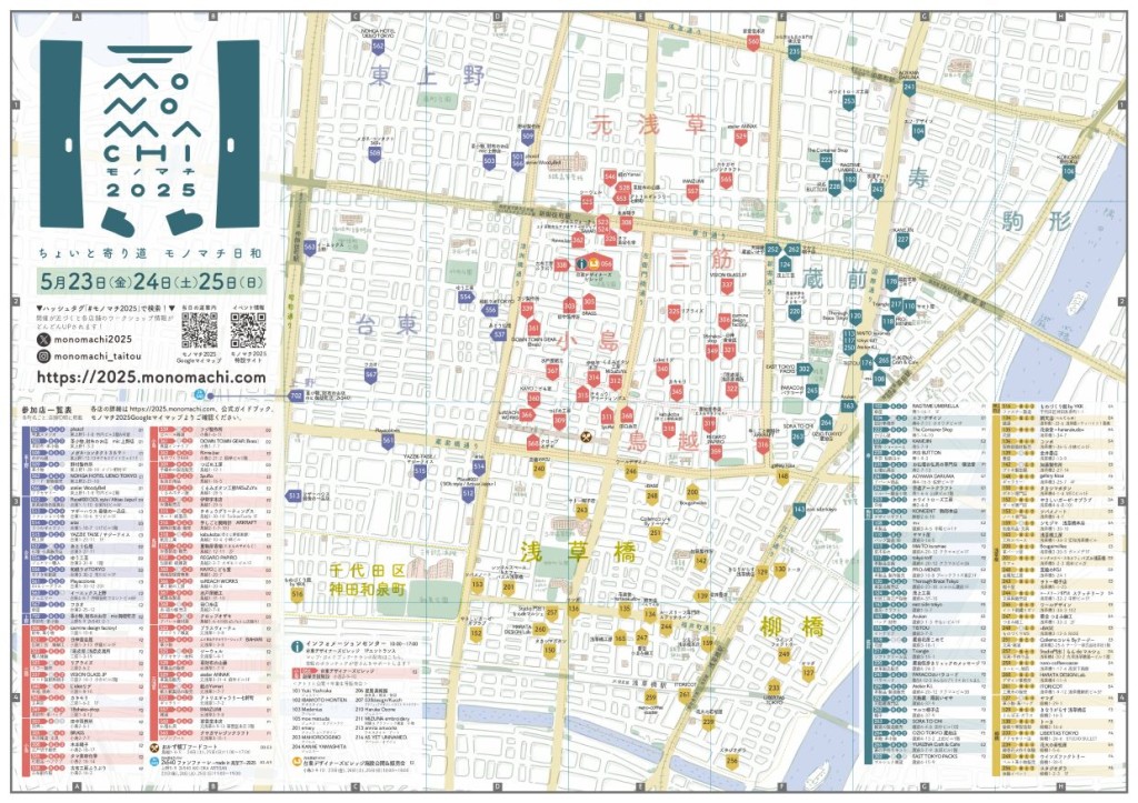 モノマチ歩きに欠かせない「モノマチマップ」。事前チェックにお役立てください。